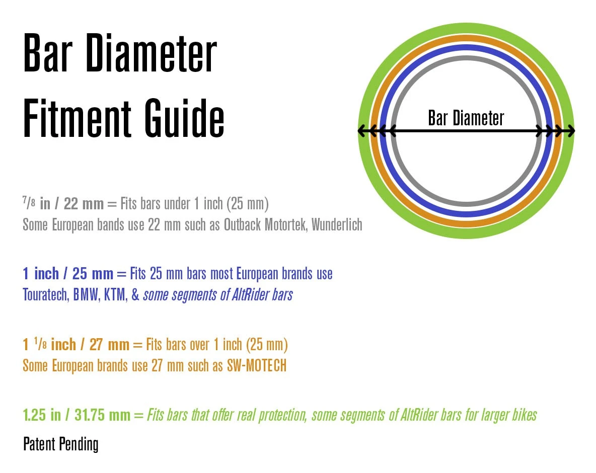 Taking the long trip between trails or on a highway cruise, need to stretch your legs or want to put your feet up? AltRider has you covered with their Universal Highway Pegs for in multiple bar diameters.
