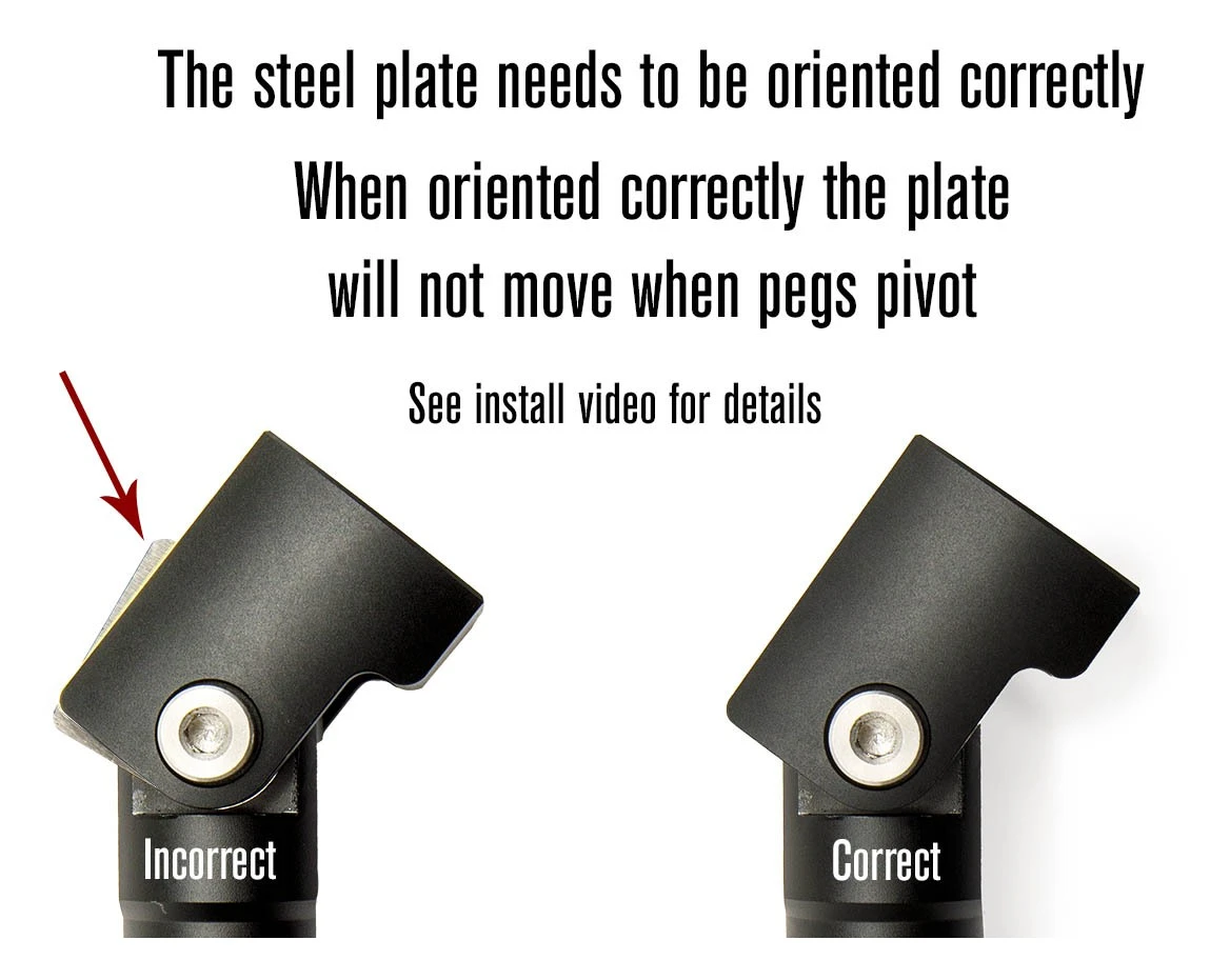 - Mounted with a ball detent to keep pegs stationary whether folded in or out