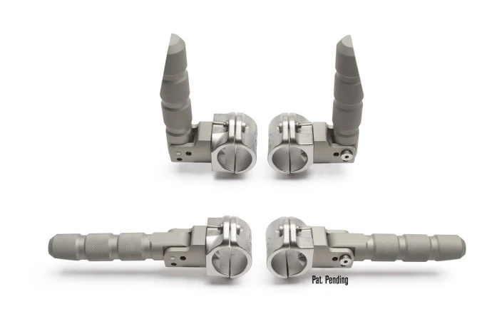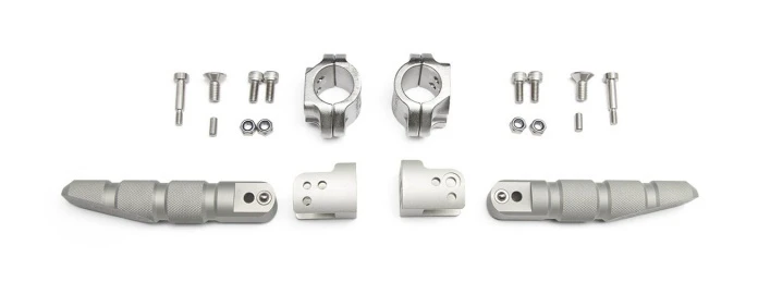 - CNC machined billet aluminum pegs with deep knurling for traction