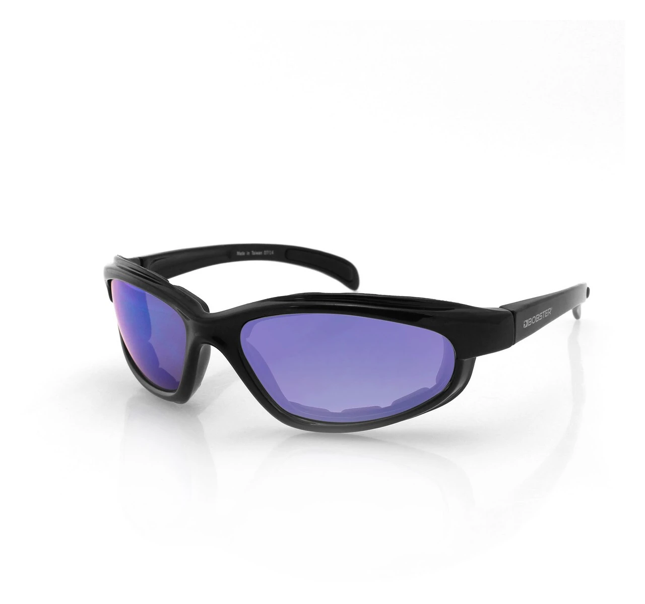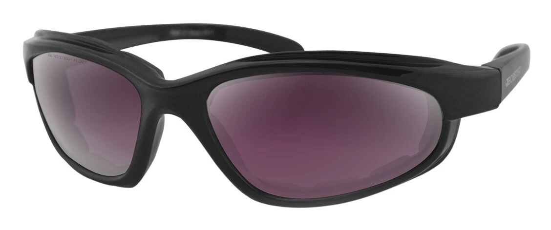 Fast and Furious, the Fat Boy sunglasses feature photochromic lens technology. The lens transmission allows 85% of light through indoors and 32% of light through while outdoors in bright light. Featuring anti-fog, polycarbonate lenses, this eyewear enables usage through varying light. In addition, closed cell foam around the frame improves comfort and prevents wind or debris from impairing clarity.