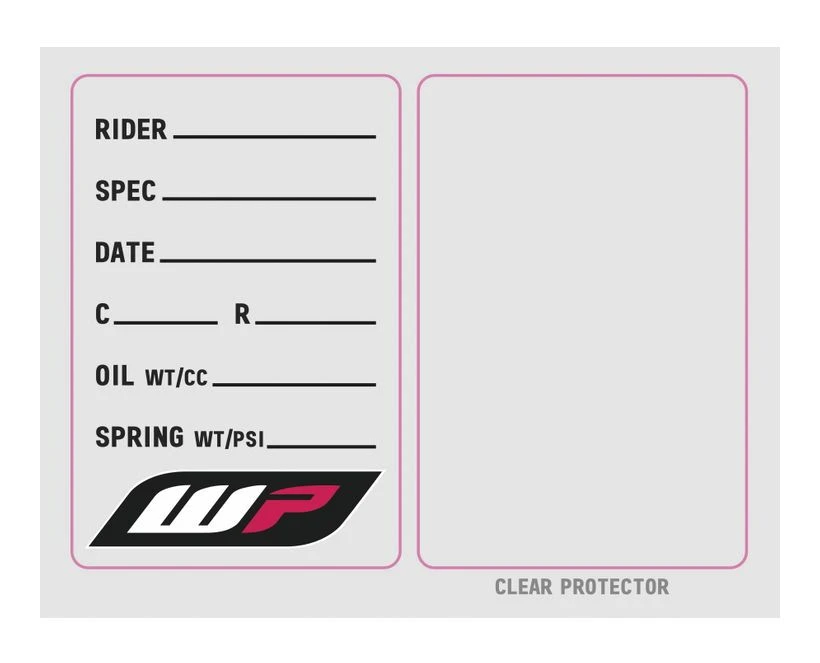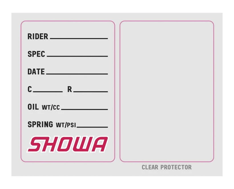 - Spec sticker can be applied to your forks so your personal specs can be written and recorded