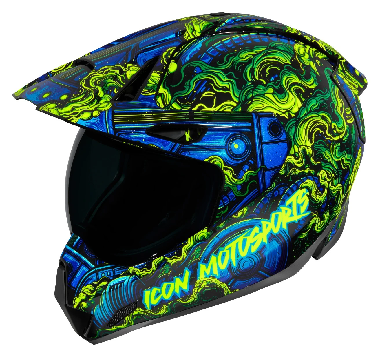 The Icon Variant Pro Helmet is an all-terrain terror that can hunt on the urban landscapes or prowl off the beaten path. Its composite shell is lightweight and stiff. A sculpted neckroll interfaces with your jacket so you can lean forward into a tuck without binding. A modular liner wicks sweat away so you can focus on choosing your line or the SUV that’s about to drift into your lane. The off-road inspired peak is wind tunnel tested for stability at speed. The Icon Variant Pro Helmet is ready for any adventure be it in the concrete jungle, logging roads or other mind altering journeys.