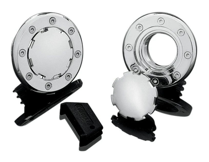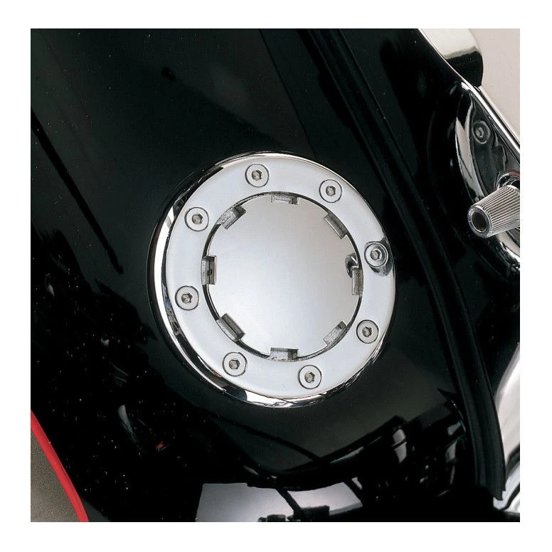 These slick flush mount gas caps have the high-tech look of aviation-style fuel fillers. The built-in trim ring protects the painted surface around the filler opening from dings and gas stains. A keyed entry system permits the ultra thin profile and prevents tampering. Simply screws into the stock opening in your gas tank with no cutting required. Available in vented and non-vented styles for 1983 and later screw-in H-D style gas tanks.