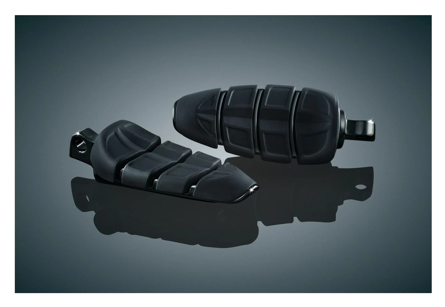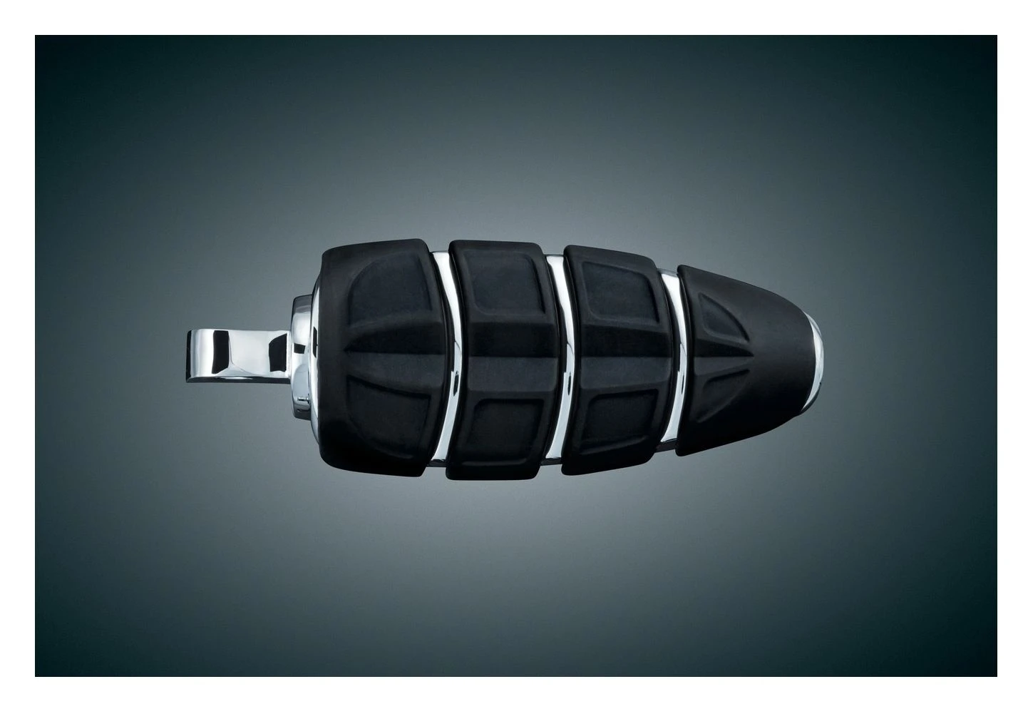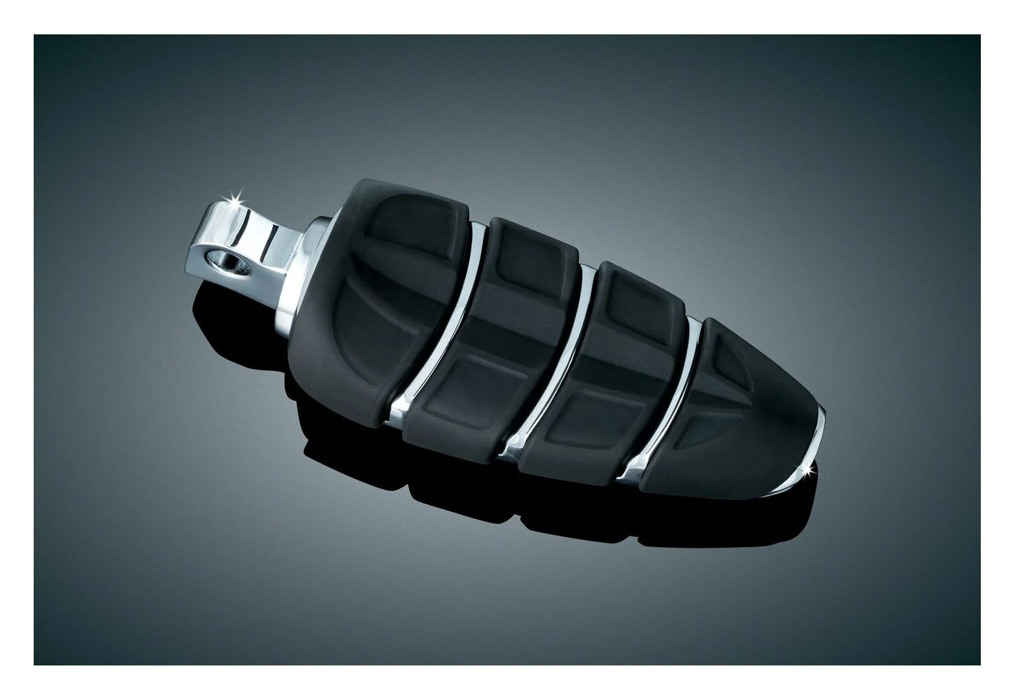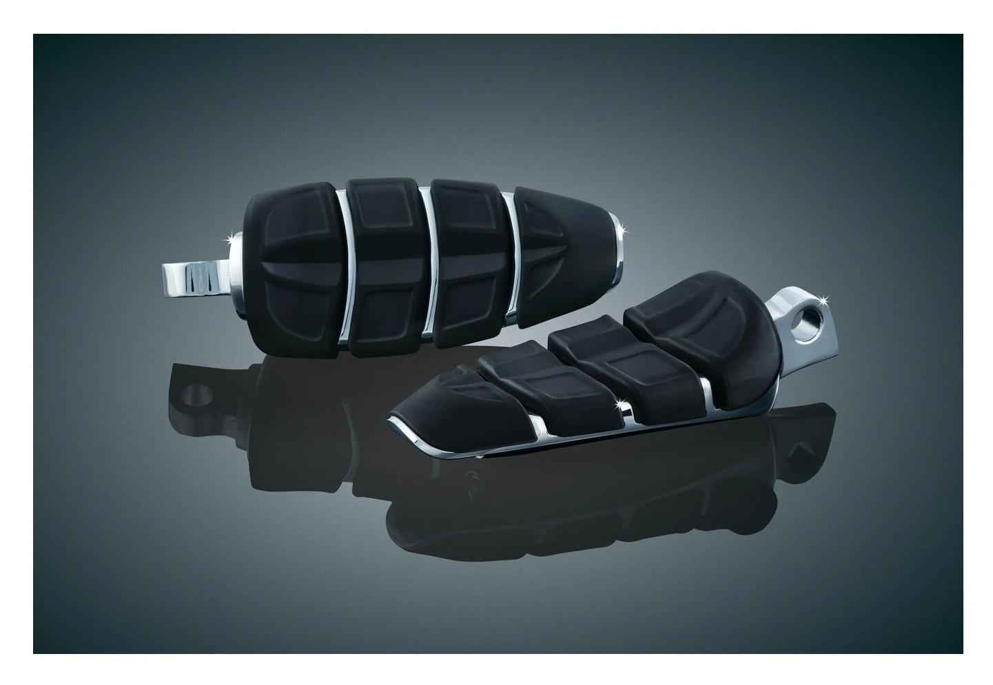 Modern, stylish, and functional. Designed to keep you moving with the perfect blend of vibration dampening rubber and contrasting chrome or black finishes to set your bike apart from the rest. The Kinetic pegs are available with late model H-D male-mount ends. Complete the look with Kuryakyn Kinetic Grips, Shift Peg, and Brake Pedal (available separately). Sold in pairs.