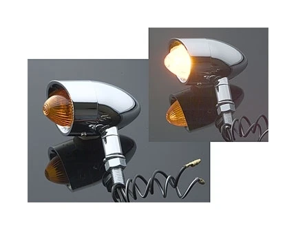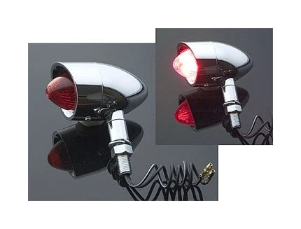 This Nostalgic Style Mini marker lights will look great on stock and custom bikes. Steel housing has a mini shroud and bullet shaped lens.