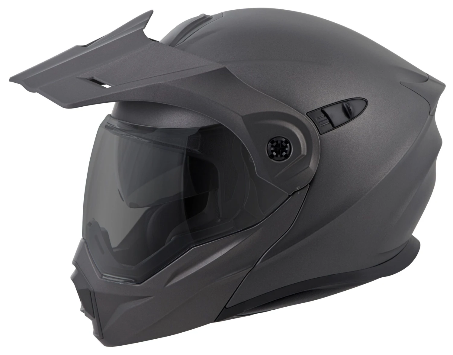 Scorpion has redefined a segment, melding the best features of touring helmets with the versatility of an off-road lid. Scorpion EXO-AT950 Helmet is the all-in-one swiss army knife of the helmet world. The modular chin bar allows you to relieve your claustrophobia or ask for directions while the off-road style peak and large eye port deflects roost, blocks the sun and allows you to wear goggles when tearing up the trails. Additional features such as a Everclear anti-fog face shield and Speedview drop-down internal sun visor keeps your vision clear and ready for whatever is around the next corner. If you’re going to be hitting the highway, the peak visor is easily removed to give you an aerodynamic profile so you can bug out at speed. Eyeglass compatible cheek pads and a KwikWick II liner ensures total comfort.