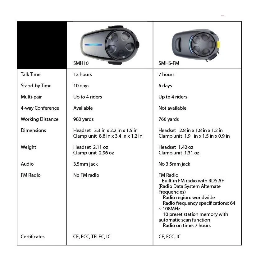 The SMH10 is a Bluetooth v3.0+EDR Class 1 Stereo Headset with long-range Bluetooth Intercom designed specifically for motorcycles. With the SMH10 on your helmet, you can call hands-free on your Bluetooth mobile phone, listen to stereo music or voice instructions of GPS navigations by Bluetooth wirelessly, and have intercom conversations in full duplex with a passenger or other motorcycle riders. Thanks to the latest Bluetooth v3.0+EDR and the advanced digital processing technology, the Sena SMH10 bluetooth helmet communication system offers the best sound quality for both incoming and outgoing sound in its class. Also, the easy-to-access and intuitive button operations make the SMH10 a perfect companion for motorcycles.