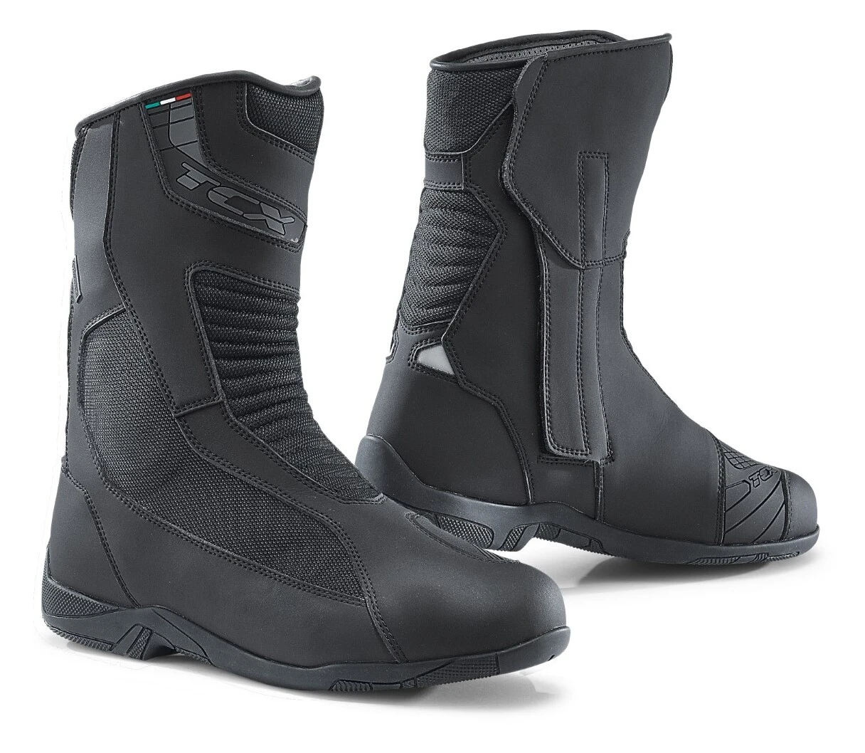The TCX Explorer 4 Gore-Tex Boots are the next evolution of the waterproof touring boot from TCX. Microfiber with panels of abrasion resistant fabric let the touring boot breathe well rain or shine. Its Gore-Tex waterproofing is guaranteed to keep you dry so you don’t have to worry about wet tootsies on your ride to work or tour on roads less traveled. Beefed up heel, shin and malleolus areas help disperse any errant impact energy. Ride longer with the TCX Explorer.4 GTX Boots.